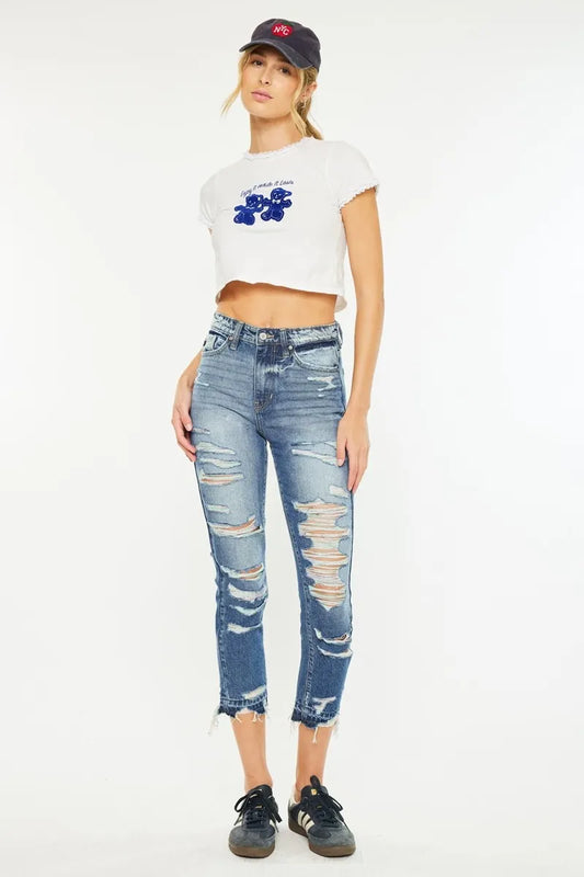Kancan High Rise Distressed Boyfriend Fit Jeans