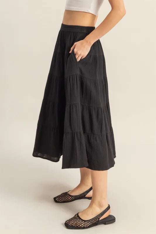 HYFVE Double Gauze Tiered Midi Skirt with Pockets