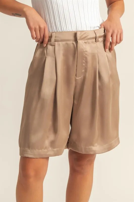 HYFVE High-Waist Pleated Satin Shorts