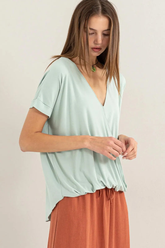 Umgee Textured Flutter Sleeve Notch Neck Top
