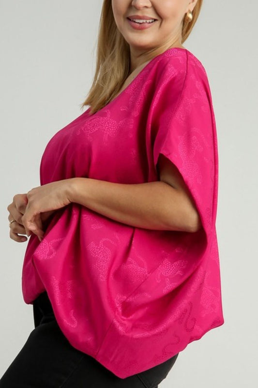 Umgee Full Size Satin Animal Print Jacquard Top Plus Size