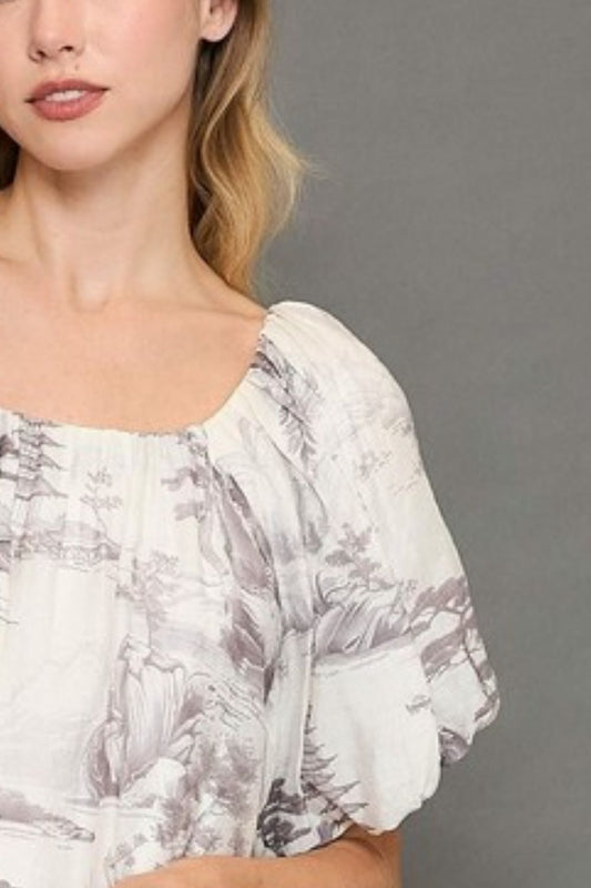 Umgee Full Size Two Tone Toile Print Top Plus Size