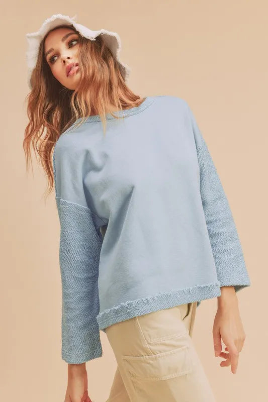 Aemi + Co Frayed Edge Round Neck Sweatshirt