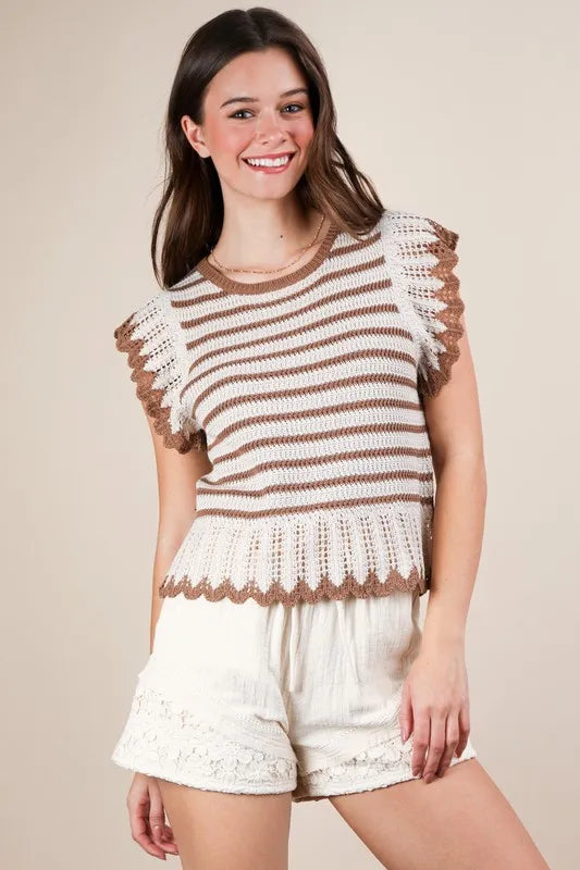 VERY J Ruffle Detail Striped Knit Sweater Top