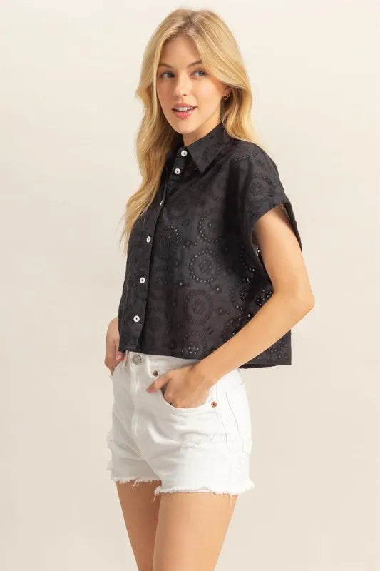HYFVE Lightweight Eyelet Button Down Short Sleeve Shirt