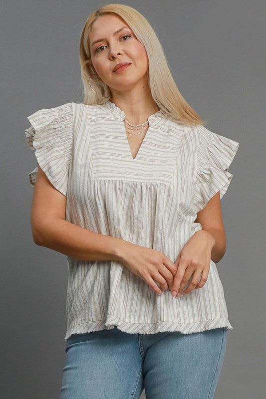 Umgee Full Size Linen Blend Scalloped Hem Top Plus Size