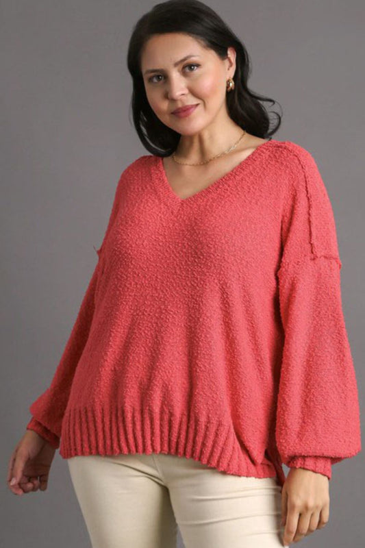 Umgee Full Size Dropped Shoulder Side Slit Sweater Plus Size