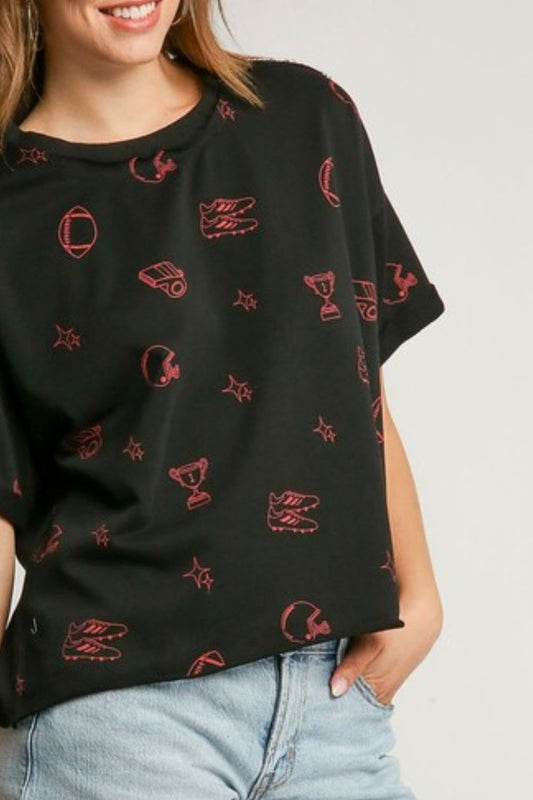 Umgee Full Size Game Day French Terry Graphic Top Plus Size