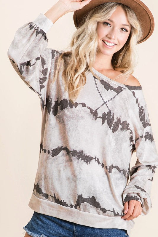BiBi Tie-Dye French Terry Round Neck Long Sleeve T-Shirt