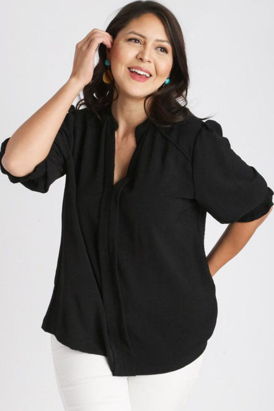 Umgee Full Size Split Neck Boxy Cut Top with Piping Details Plus Size