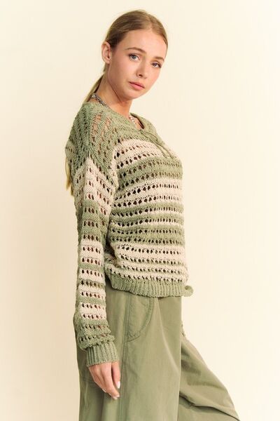 Davi & Dani Contrast Striped Crochet Drop Shoulder Knit Cover Up