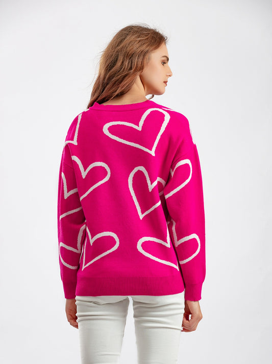 Round Neck Openwork Long Sleeve Pullover Sweater