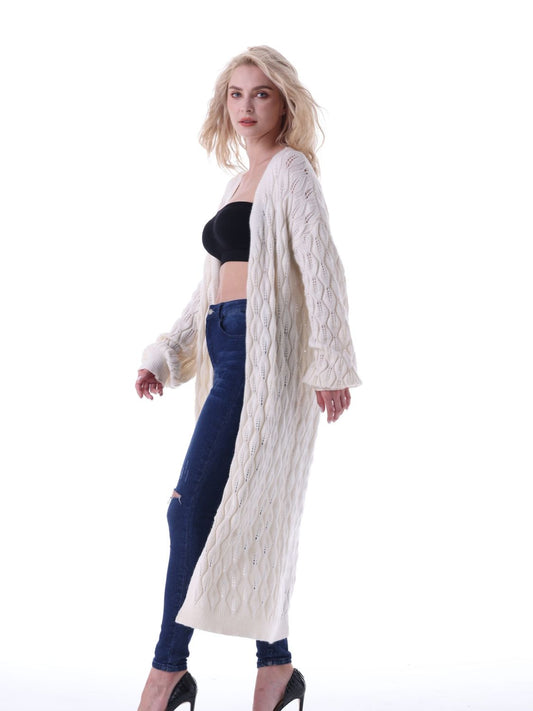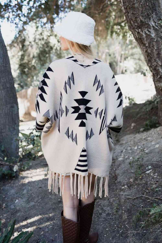 Woven Right Fringe Sleeve Dropped Shoulder Cardigan