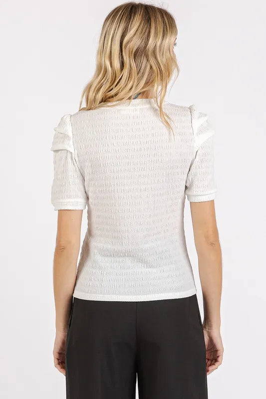 Mittoshop Textured Round Neck Short Sleeve Blouse