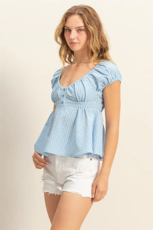 HYFVE Gingham Scoop Neck Cap Sleeve Blouse