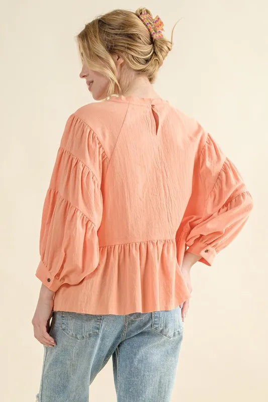 Zenana Buttoned Long Sleeve Blouse
