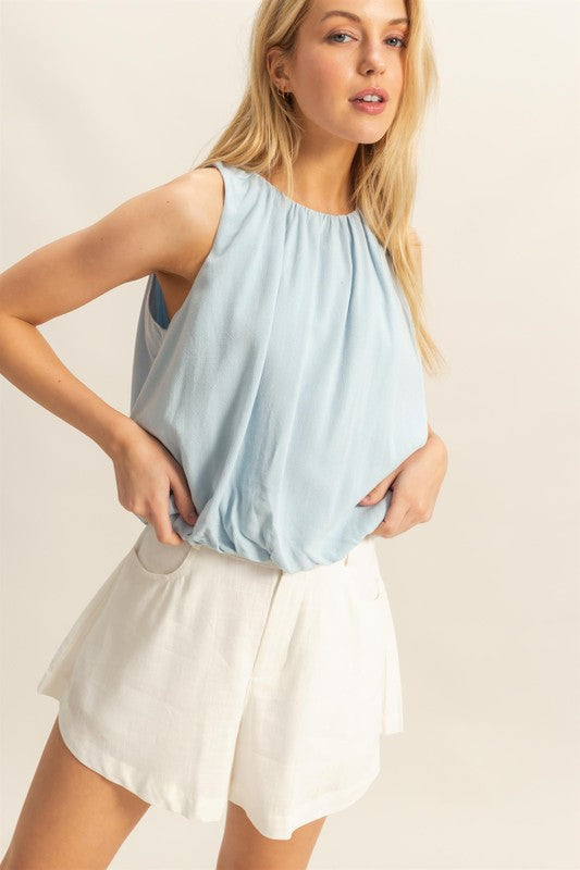 HYFVE Bubble Hem Side Tie Detail Round Neck Sleeveless Blouse