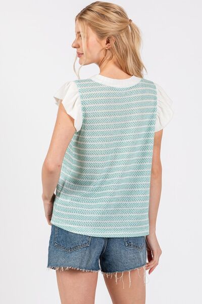 Ces Femme Texture Mock Neck Ruffle Cap Sleeve Blouse