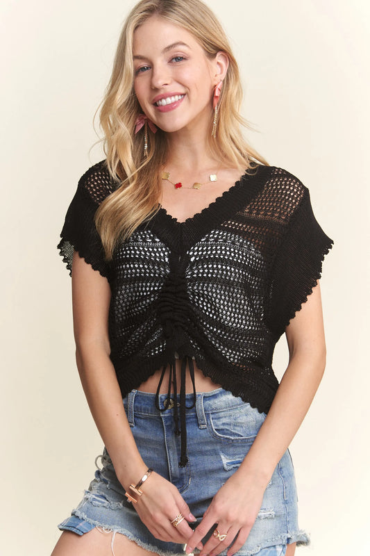 MABLE Cut Out Long Sleeve Ribbed Knit Top