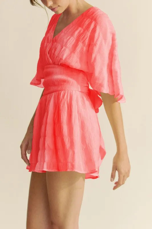 Davi & Dani Batwing Sleeve Waist Belt Romper