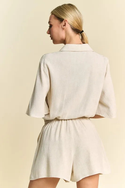 Davi & Dani Drawstring Waist Button-Down Shirt Romper