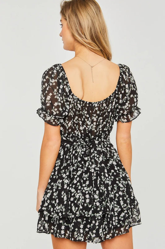 VERY J Lace Detail Puff Sleeve Romper with Pockets