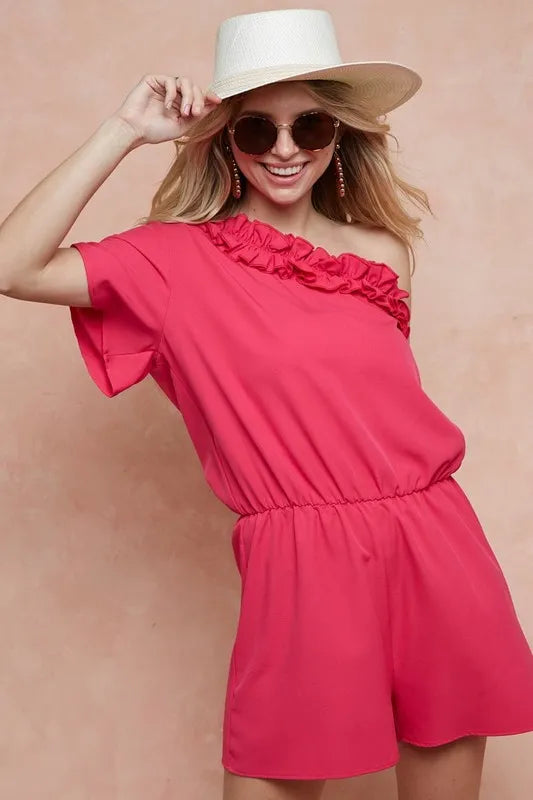 BiBi Crepe Woven Ruffle Detailed One Shoulder Romper