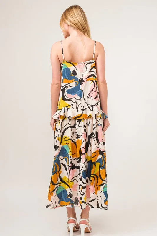 And The Why Ruffled Abstract Floral Printed Midi Cami Dress