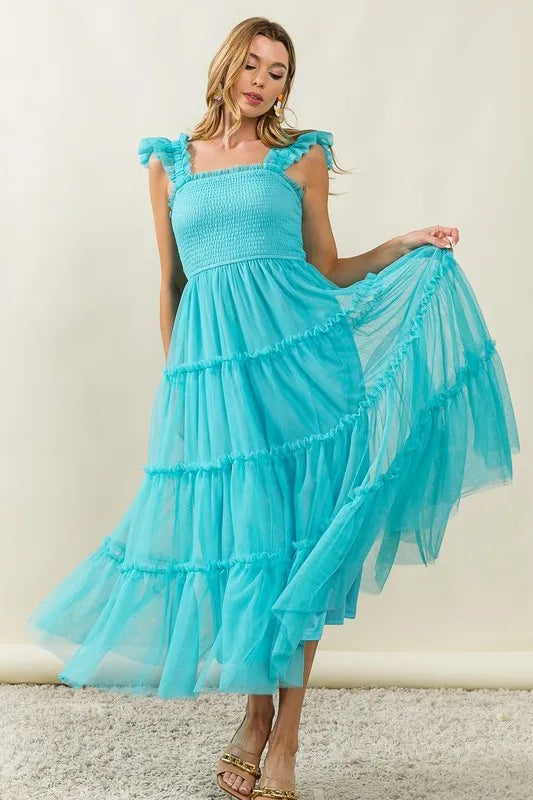 Sold outBiBi Frill Mesh Tiered Midi Dress