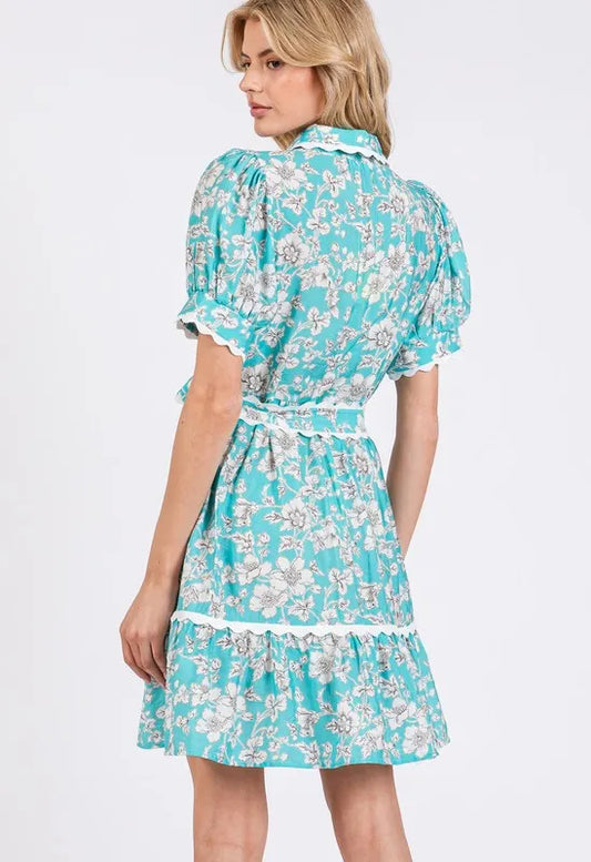 SAGE+FIG Vintage Floral Scalloped Mini Shirt Dress