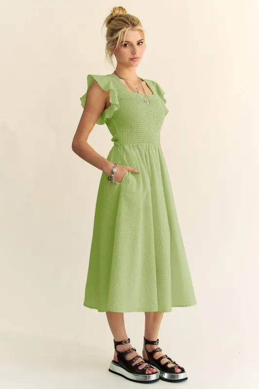 Davi & Dani Ruffled Cap Sleeve Smocked Mini Dress
