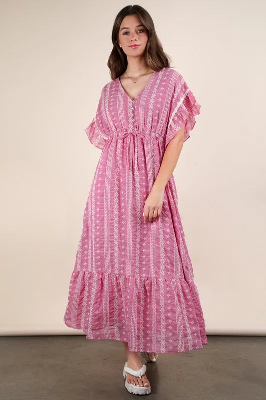 And The Why Washed Cotton Gauze Fringe Detail Tiered Dress