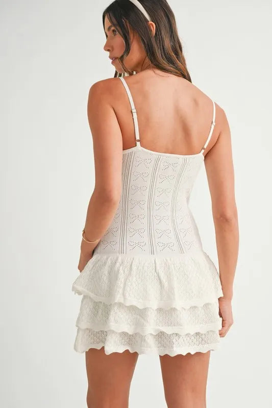 MABLE Crochet Crisscross Spaghetti Strap Mini Dress