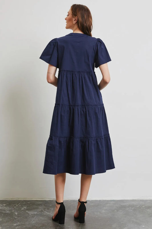 HEYSON Full Size Cotton Poplin Ruffled Tiered Midi Dress