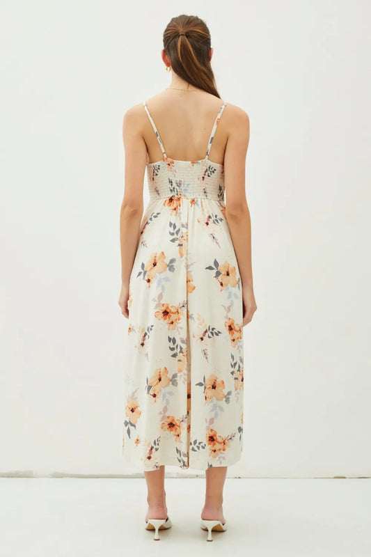 Umgee Printed Smocked Midi Dress with Ruffle Details