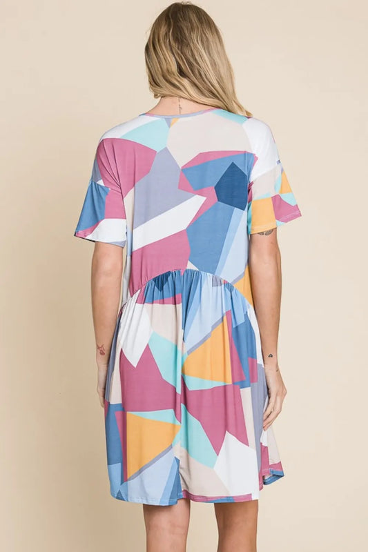 Umgee Full Size Printed Notched Puff Sleeve Mini Dress Plus Size