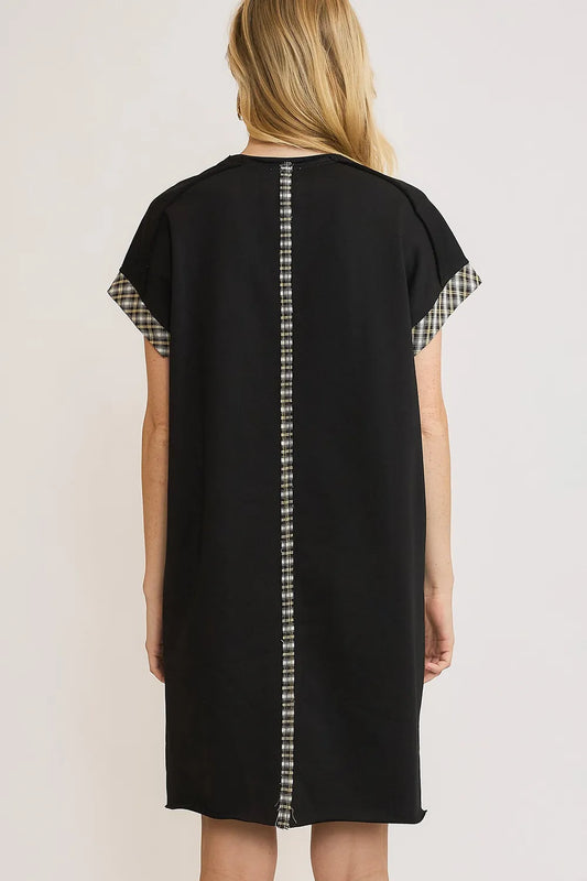 Umgee Peace Plaid Applique Short Sleeve Mini Dress