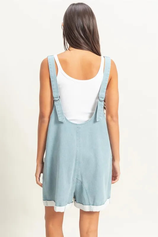 SO ME Button Up Front Washed Denim Sleeveless Romper