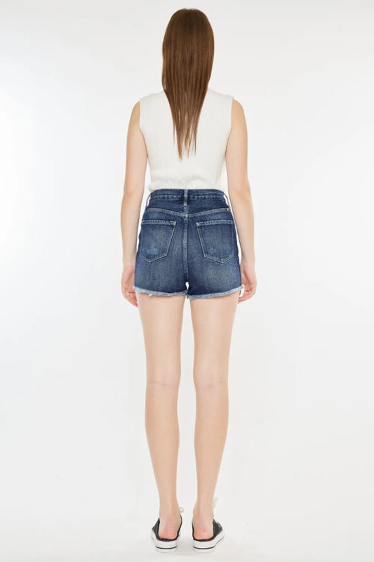 Kancan Raw Hem Distressed High Waist Denim Shorts