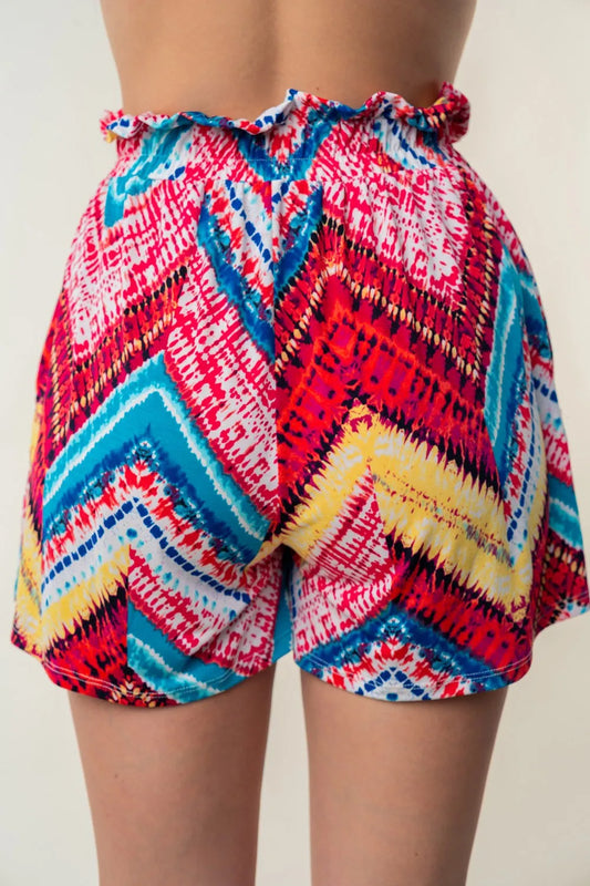 Umgee Floral Elastic Waist Jacquard Shorts with Pockets